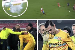 据报道称,这是一名来自圣马力诺国米球迷俱乐部的球迷,他在克雷莫内塞0-2国米的比赛中,投掷了炸到门将奥代罗的鞭炮,自己也因此受伤。