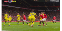 是点球吗?马奎尔在范德芬防守下禁区内倒地,裁判没判犯规